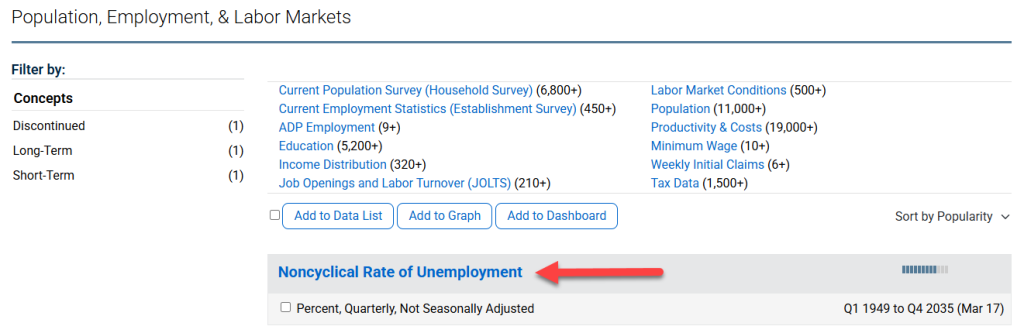 Keep clicking through categories until you see individual series titles. Click any series title to view the graph.